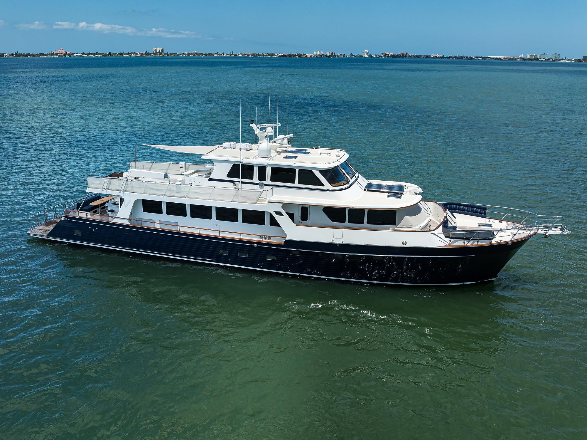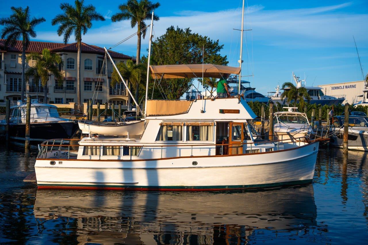 - Powered By Dependable Detroit 6-71TIBs With Major Service Completed And Numerous Mechanical Upgrades.: Detroit Diesel 6-71TIBs – 485 HP Each,Raw Water Sides Rebuilt on Both Engines (2020),New Starters (2020),Engines Repainted (2014),LED Engine Room Lighting (2014),FireBoy System Rebuilt,Hydraulic Steering,Morse Controls (Topside – 2016),Two Cruisair Reverse-Cycle AC Units with SMX Controls,Racor Fuel Filtration – Mains & Generator,Watermaker (Installed New 2013 – 450 GPD),Four Automatic/Manual Bilge Pumps,VacuFlush Head with Holding Tank & Overboard Discharge,Central Vacuum System,Bennett Trim Tabs,Engine & Bilge Alarms,Glendinning Engine Synchronizer,Block Heaters,Walker AirSeps,12VDC & 240VAC/120VAC Systems,Four 8D Batteries,8kW Phasor Generator (Approx. 2,800 hrs) – New Electrical Head 12/17,Battery Charger,CableMaster Shore Cord Reel,Fishing Gear,Personal Items