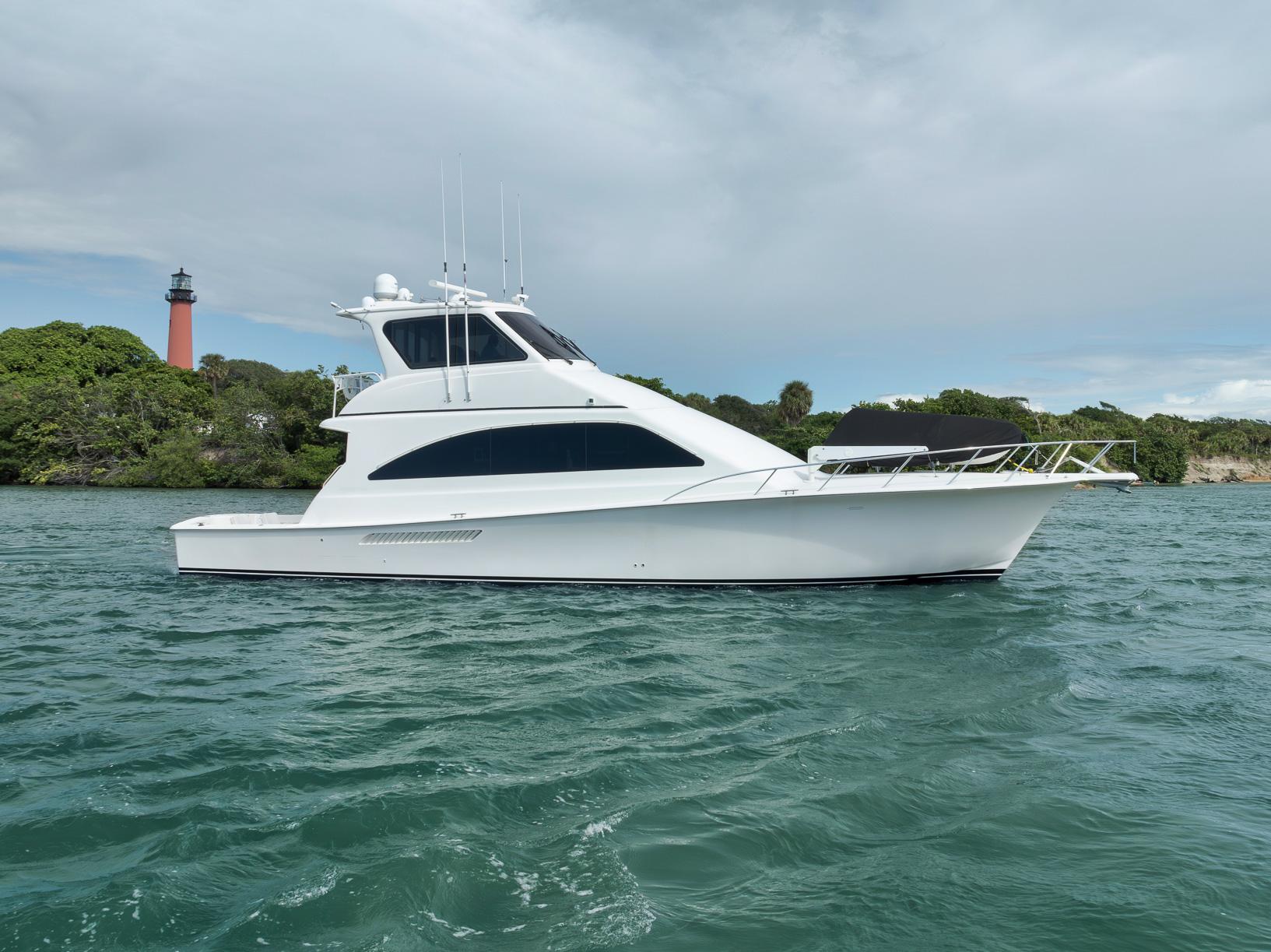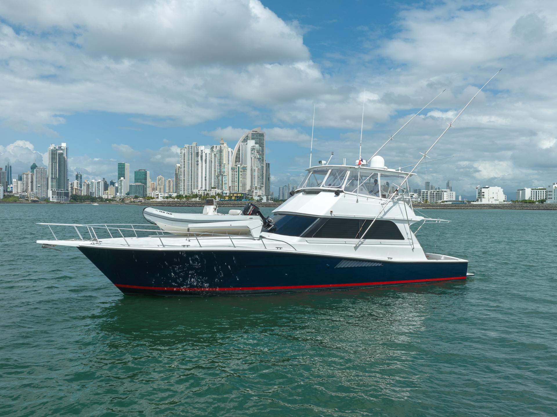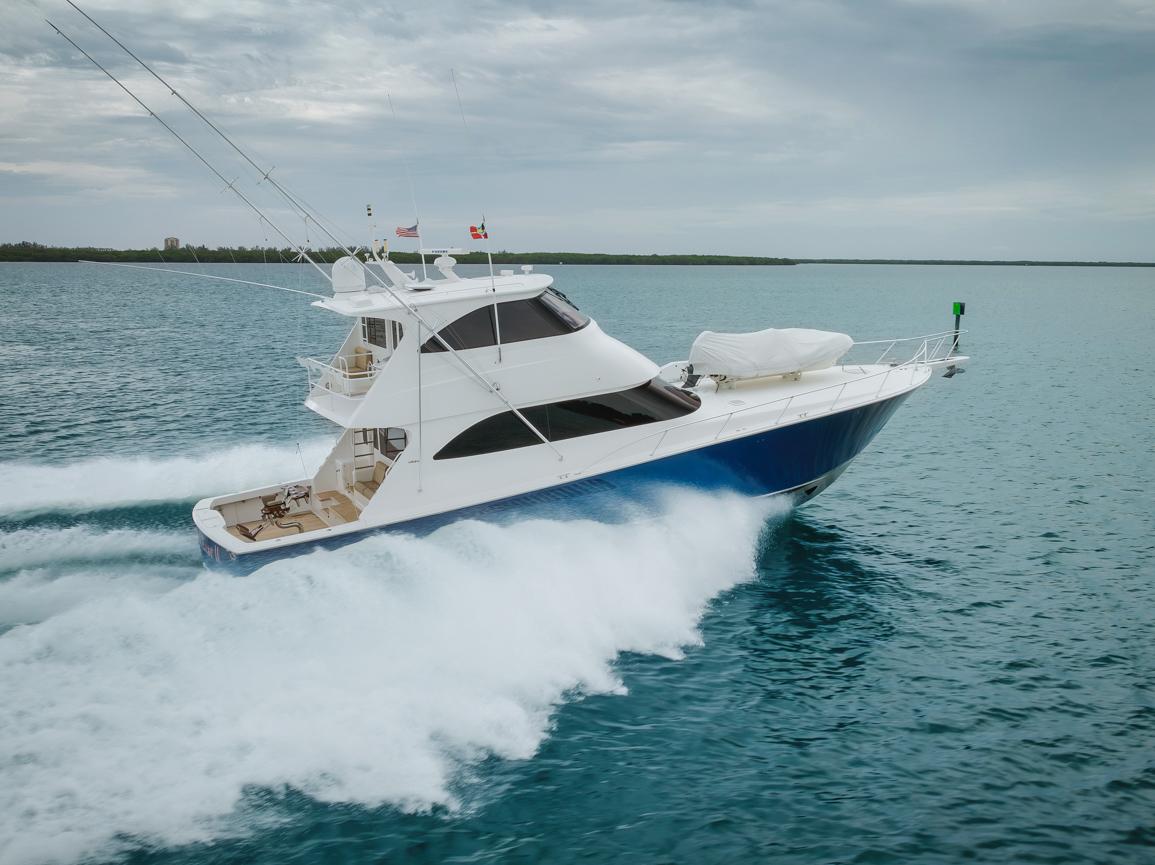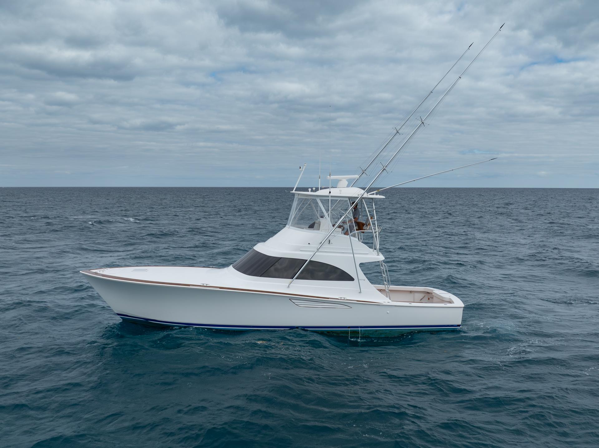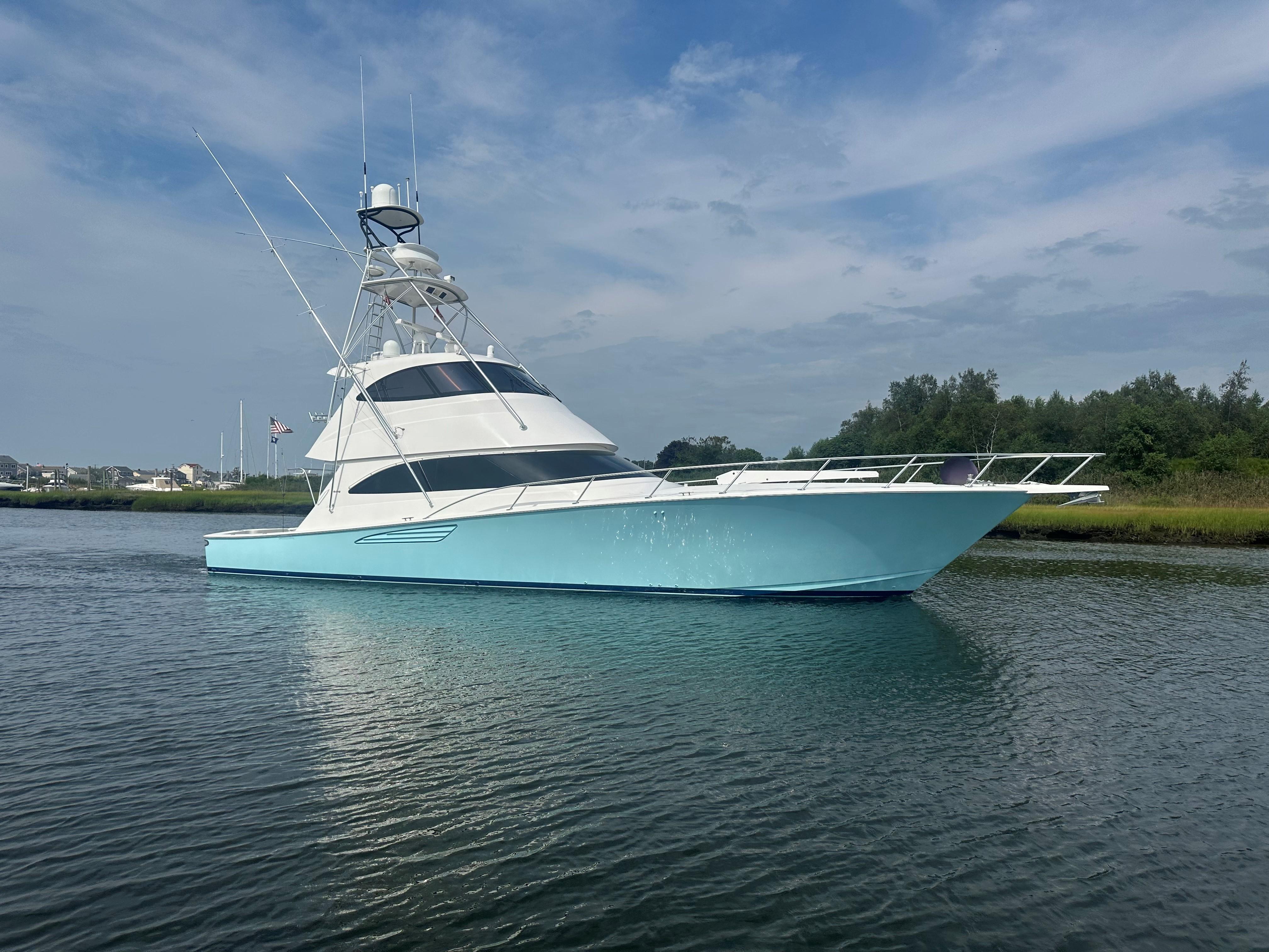 - A Clean, Well-Cared-For Exterior With Major Cosmetic Updates Already Completed.: Entire Top & Sides Painted with Awlgrip (2018),Factory Hardtop,Three-Sided Enclosure (Renewed 2023),Bow Pulpit & Rail,Ideal Windlass with Anchor (Windlass Replaced 2016),Cockpit Sun Shade with Aft “Cocktail Curtain”,Cockpit Sole Repainted (2020),Rupp Double Outriggers + Center Rigger,One Life Raft,Flybridge Cushions (New 2024),ACR RLB-100 Search Light,Fresh & Raw Water Washdown,Swim Platform,Large Fish Box,Transom Door with Gate,Tackle Storage Drawers,Cockpit Freezer
