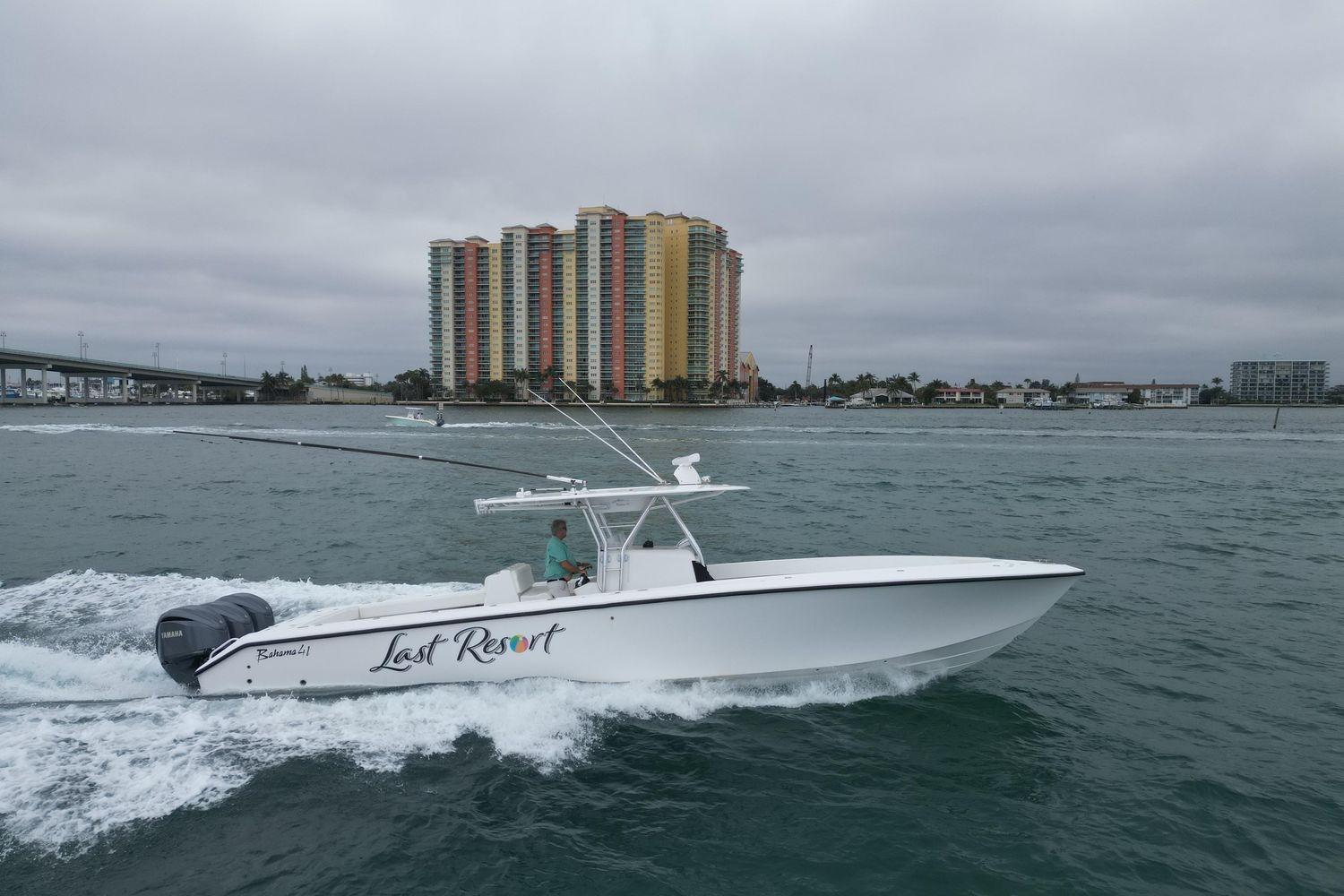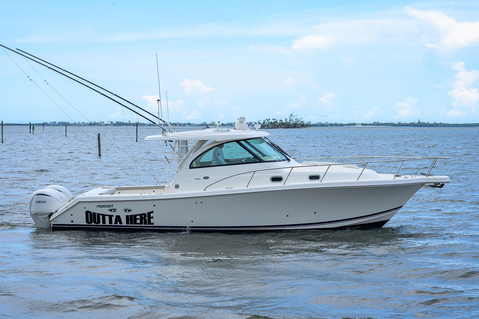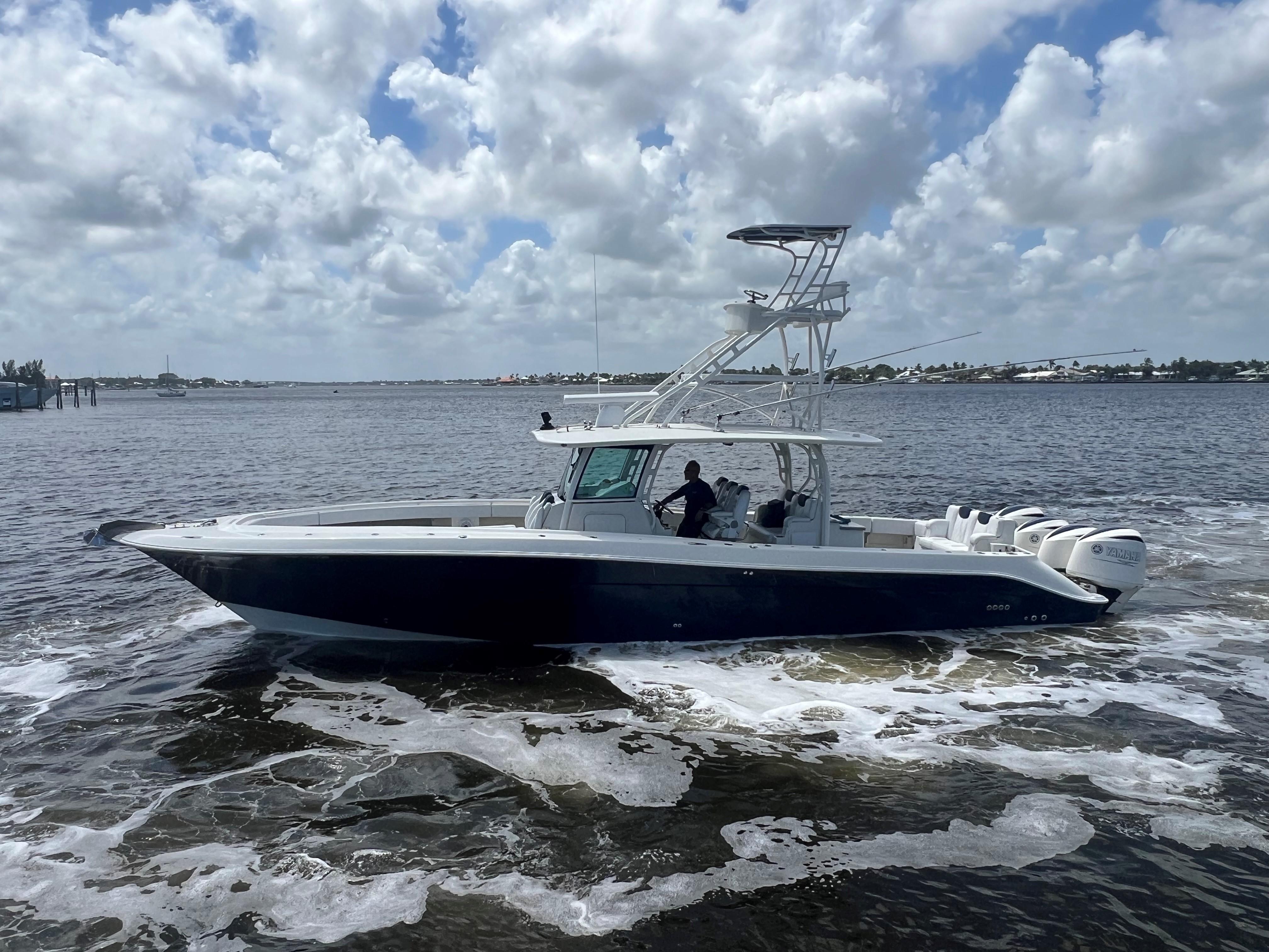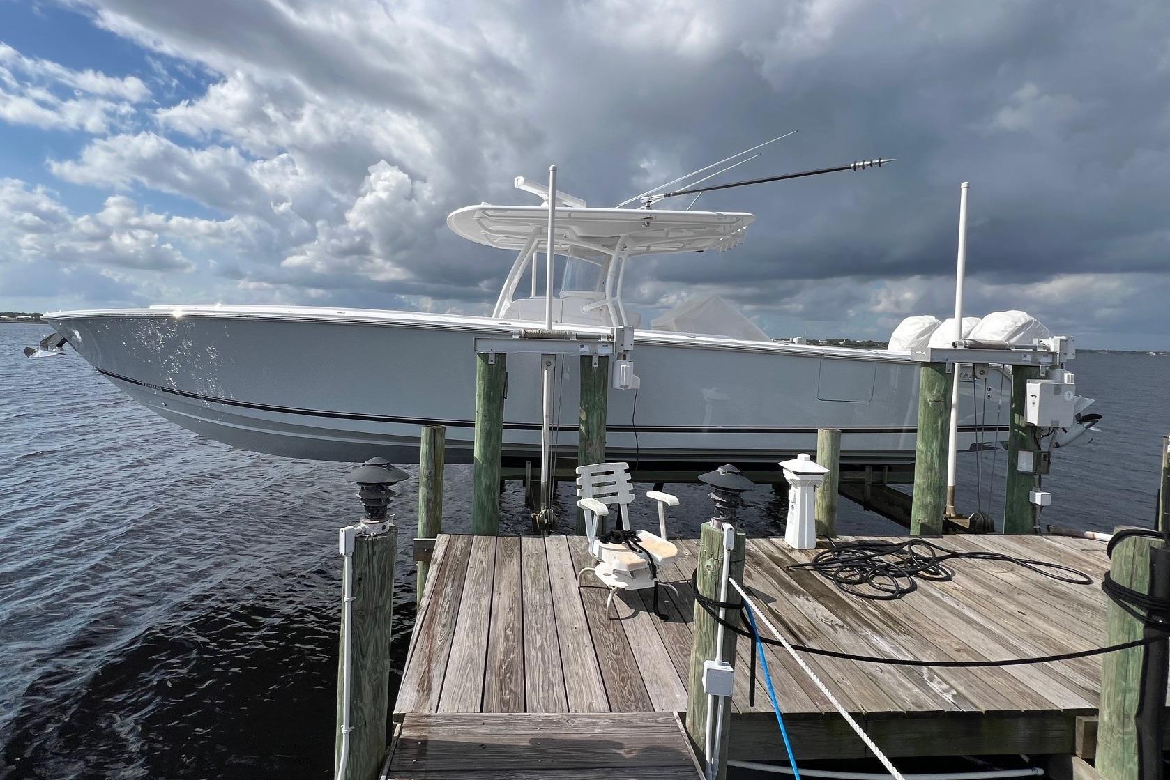 - A Clean, Well-Cared-For Exterior With Major Cosmetic Updates Already Completed.: Entire Top & Sides Painted with Awlgrip (2018),Factory Hardtop,Three-Sided Enclosure (Renewed 2023),Bow Pulpit & Rail,Ideal Windlass with Anchor (Windlass Replaced 2016),Cockpit Sun Shade with Aft “Cocktail Curtain”,Cockpit Sole Repainted (2020),Rupp Double Outriggers + Center Rigger,One Life Raft,Flybridge Cushions (New 2024),ACR RLB-100 Search Light,Fresh & Raw Water Washdown,Swim Platform,Large Fish Box,Transom Door with Gate,Tackle Storage Drawers,Cockpit Freezer