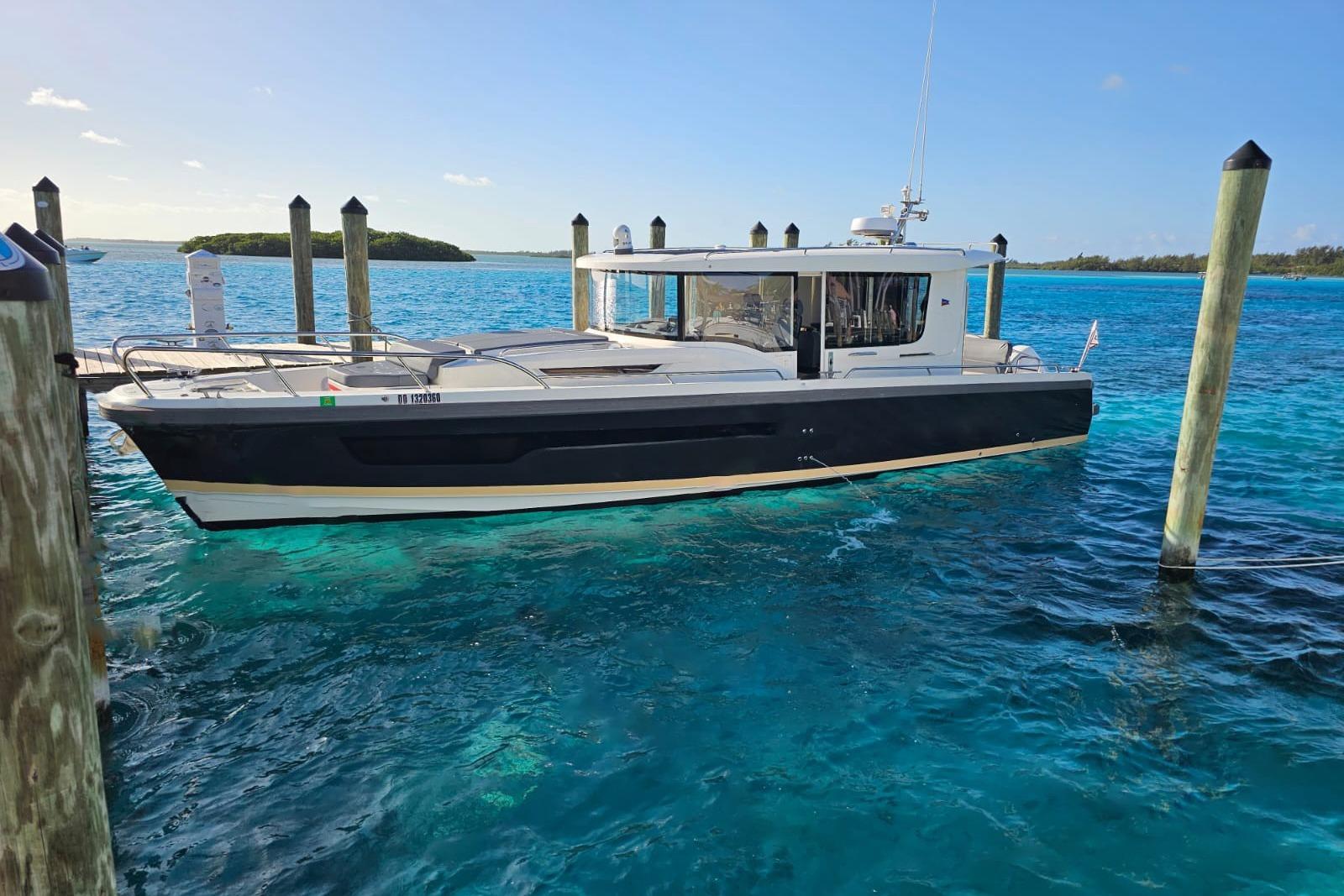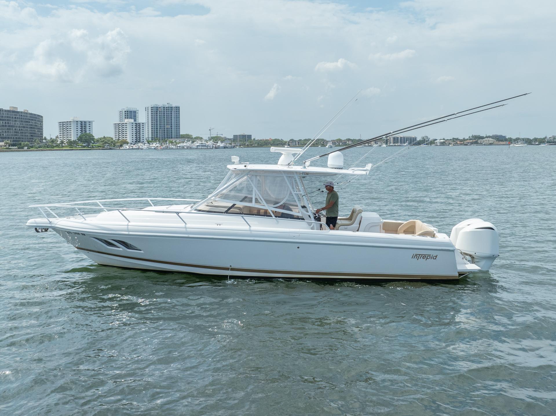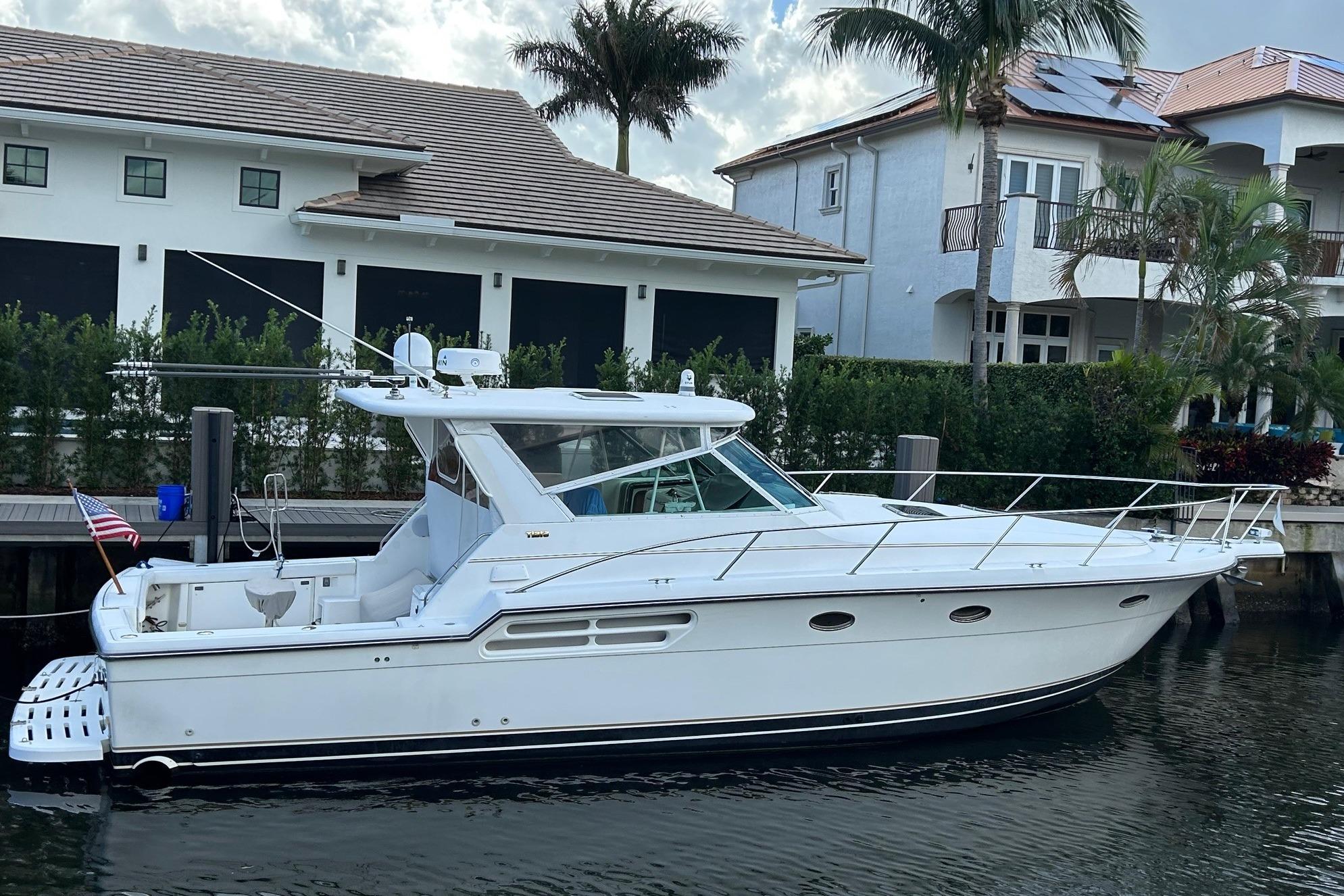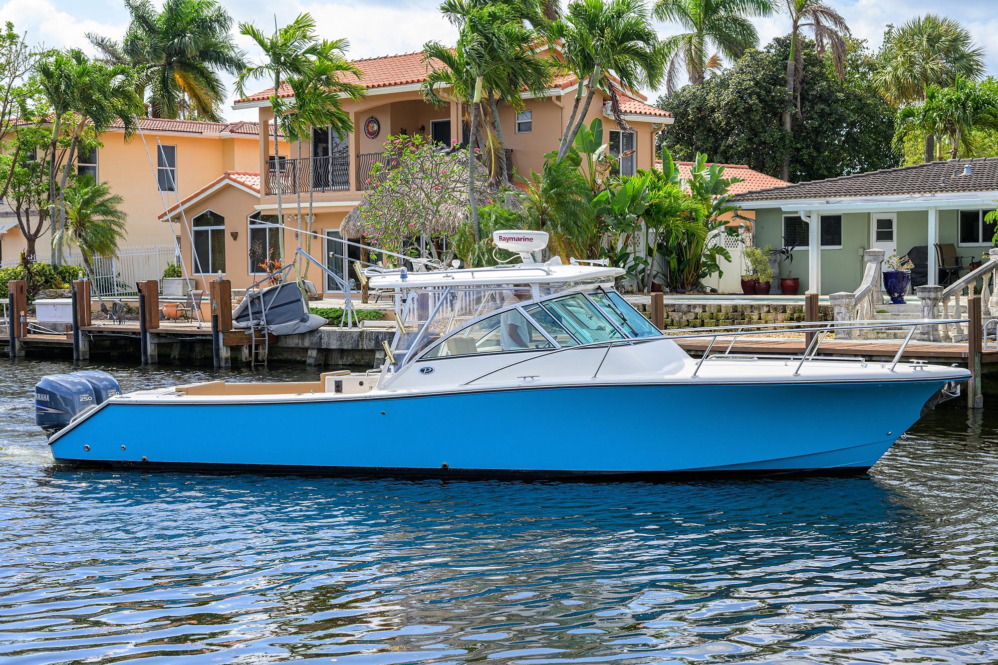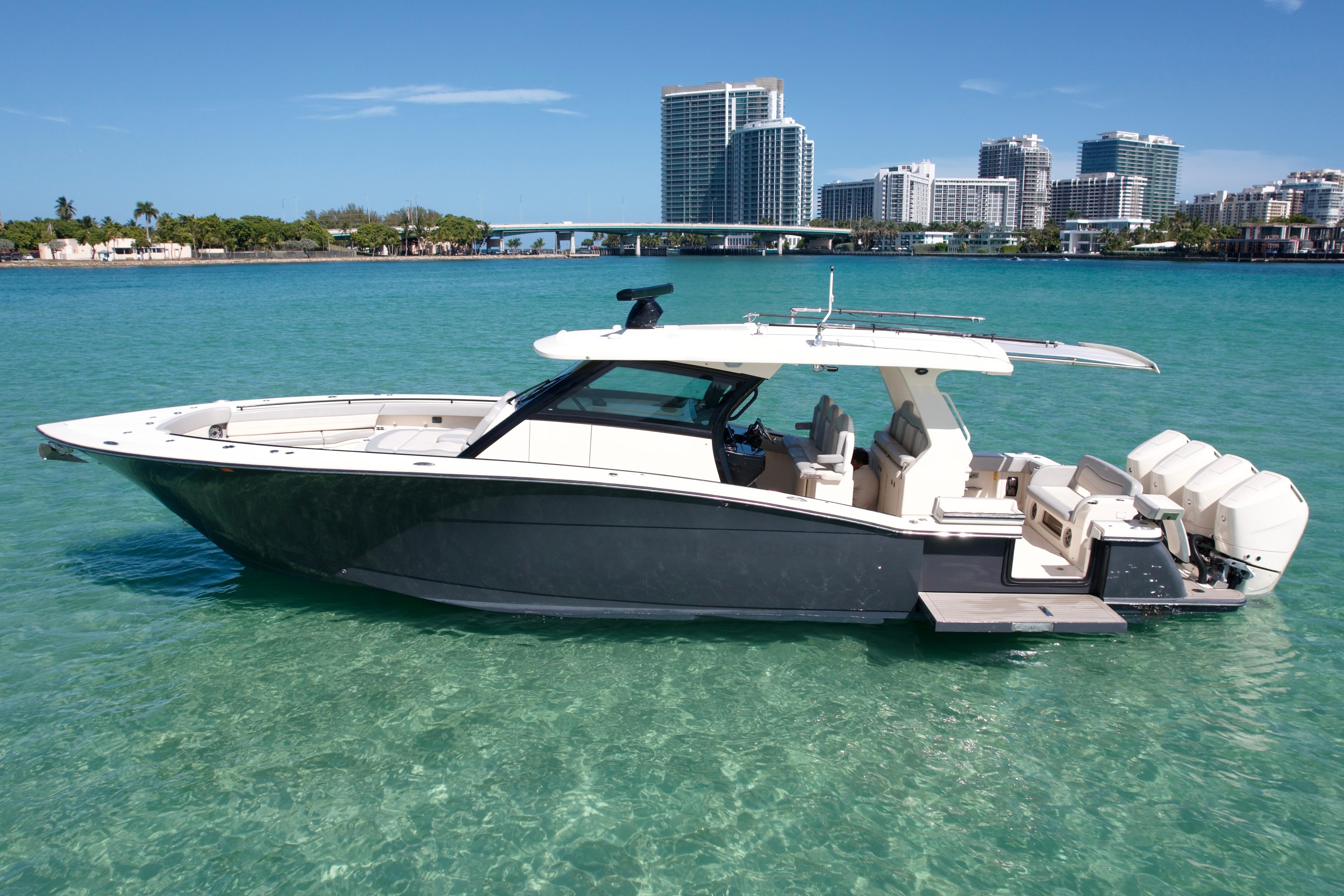 - A Clean, Well-Cared-For Exterior With Major Cosmetic Updates Already Completed.: Entire Top & Sides Painted with Awlgrip (2018),Factory Hardtop,Three-Sided Enclosure (Renewed 2023),Bow Pulpit & Rail,Ideal Windlass with Anchor (Windlass Replaced 2016),Cockpit Sun Shade with Aft “Cocktail Curtain”,Cockpit Sole Repainted (2020),Rupp Double Outriggers + Center Rigger,One Life Raft,Flybridge Cushions (New 2024),ACR RLB-100 Search Light,Fresh & Raw Water Washdown,Swim Platform,Large Fish Box,Transom Door with Gate,Tackle Storage Drawers,Cockpit Freezer